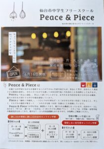 宮町商店街振興組合でお世話なっている方が、仙台市中学生フリースクールPeace&Piece(ピース アンド ピース)が、令和7年6月16日(月)に開校します。(中学生の不登校支援)開校されますのでご紹介いたします。(笑顔)