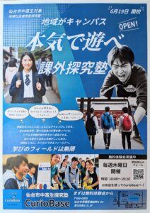 仙台市中高生探究塾 Curio base(クリオ ベース)が、令和7年6月19日(木)に開校します。