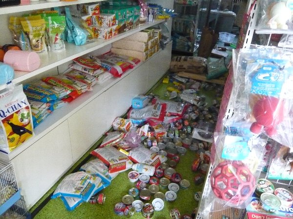 お泊りのペット達は、無事で良かったです。商品は、だいぶ落ちしてしまい 壊れたものが、でましたが‥
